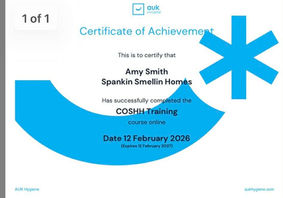 Our Commitment to Professional Standards At Spankin Smellin Homes, we believe specialist cleaning requires more than just experience — it requires ongoing training, compliance and professional development. We invest in recognised industry training to ensure we deliver safe, compliant and high-standard services across commercial cleaning, end of tenancy work and specialist biohazard situations. The certifications below reflect our commitment to: